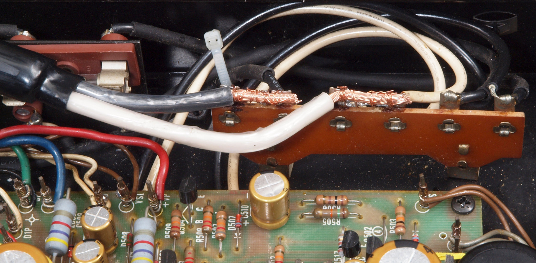 | CC5. 修理前 R側ドライブ基板−電源基板へのラッピング線。 |